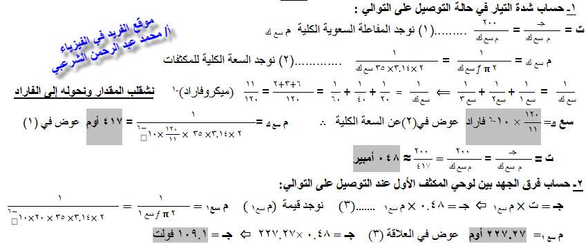 حل مسائل درس المكثفات الجزء الأول جـ1 Youtube